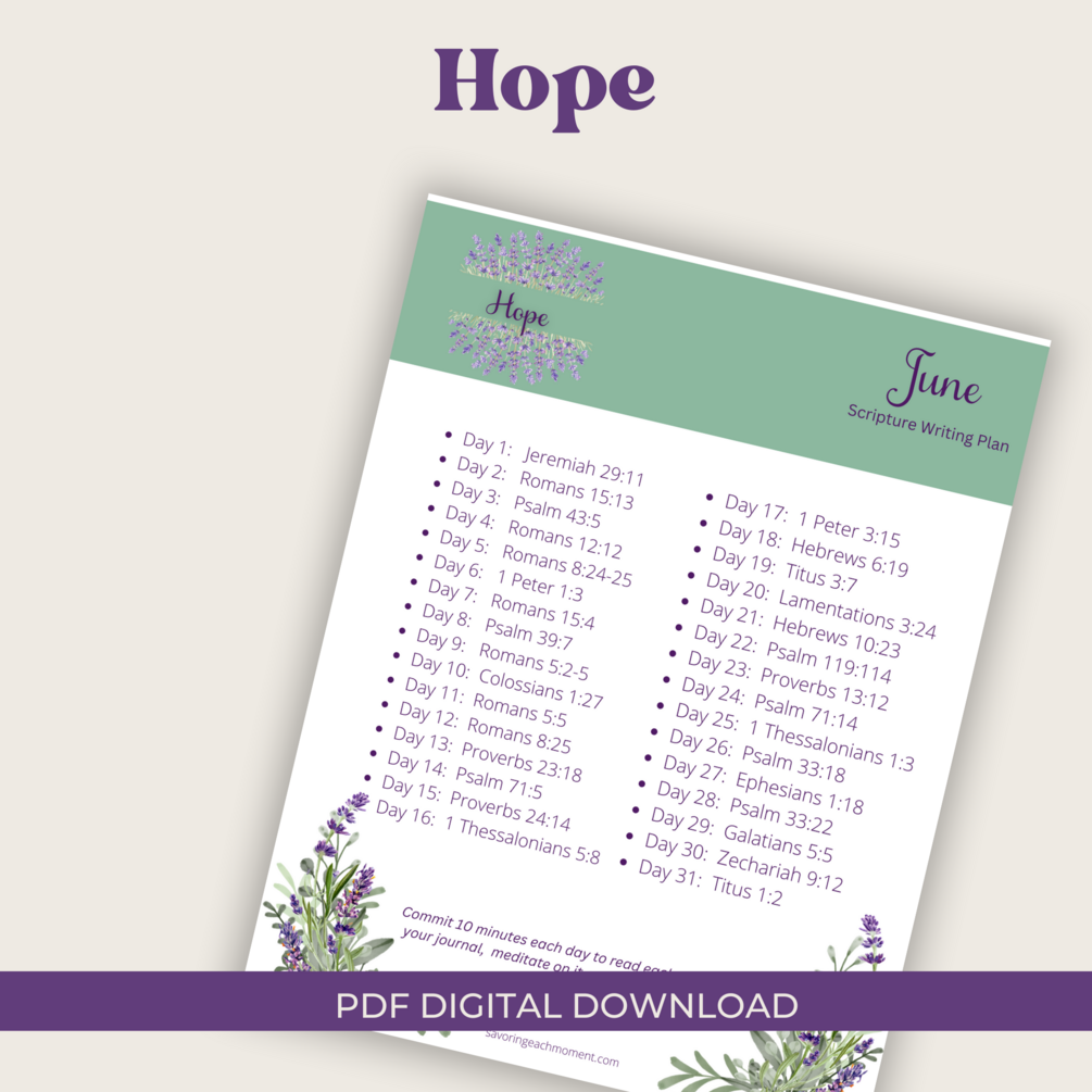 This printable Bible reading plan kit is focused on the topic of Hope.