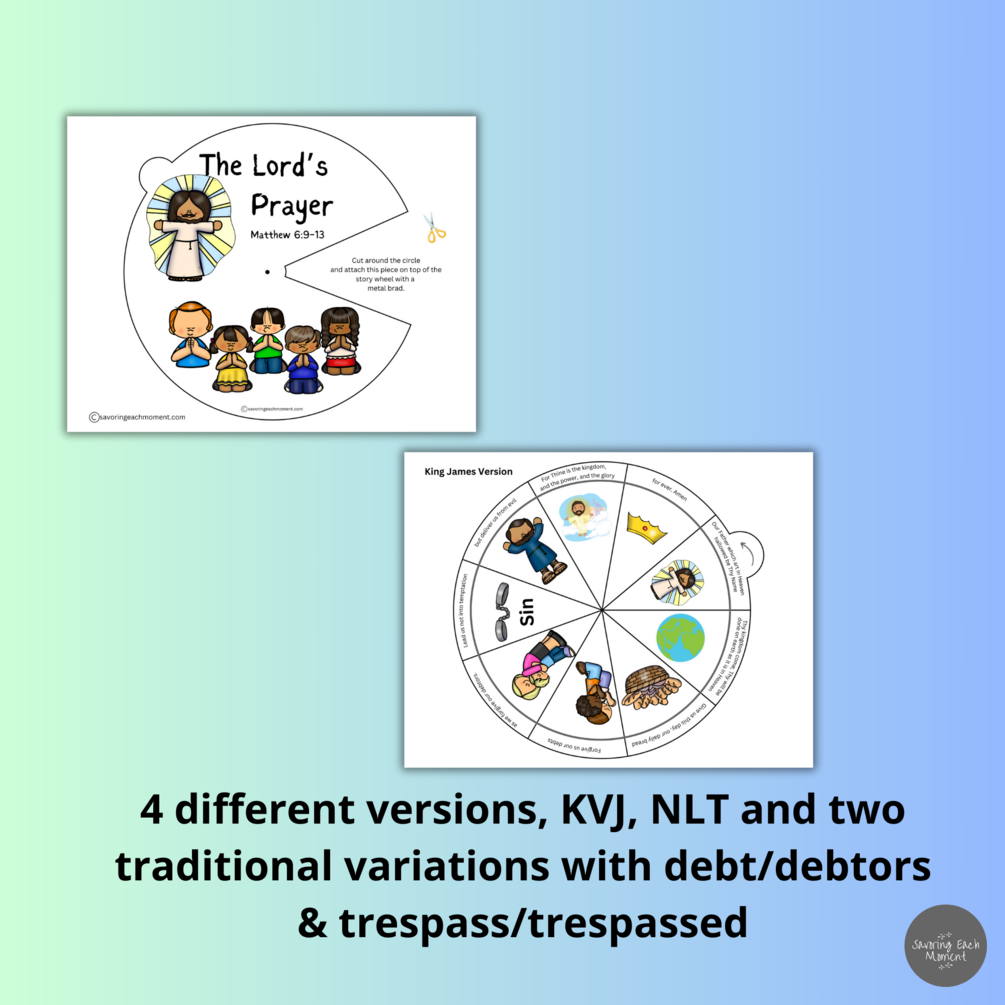 If you would like a color your own version, please check out this listing. Color your own Lord's Prayer Story Wheel Craft