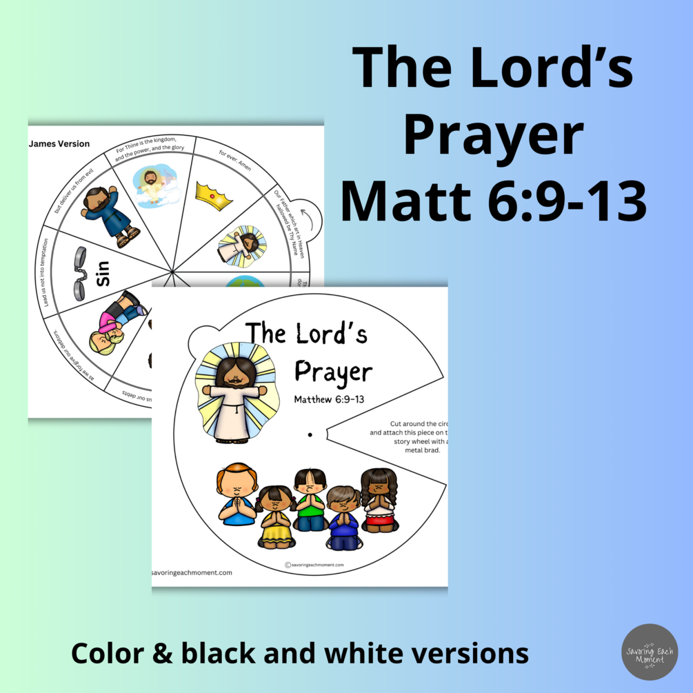 If you would like a color your own version, please check out this listing. Color your own Lord's Prayer Story Wheel Craft