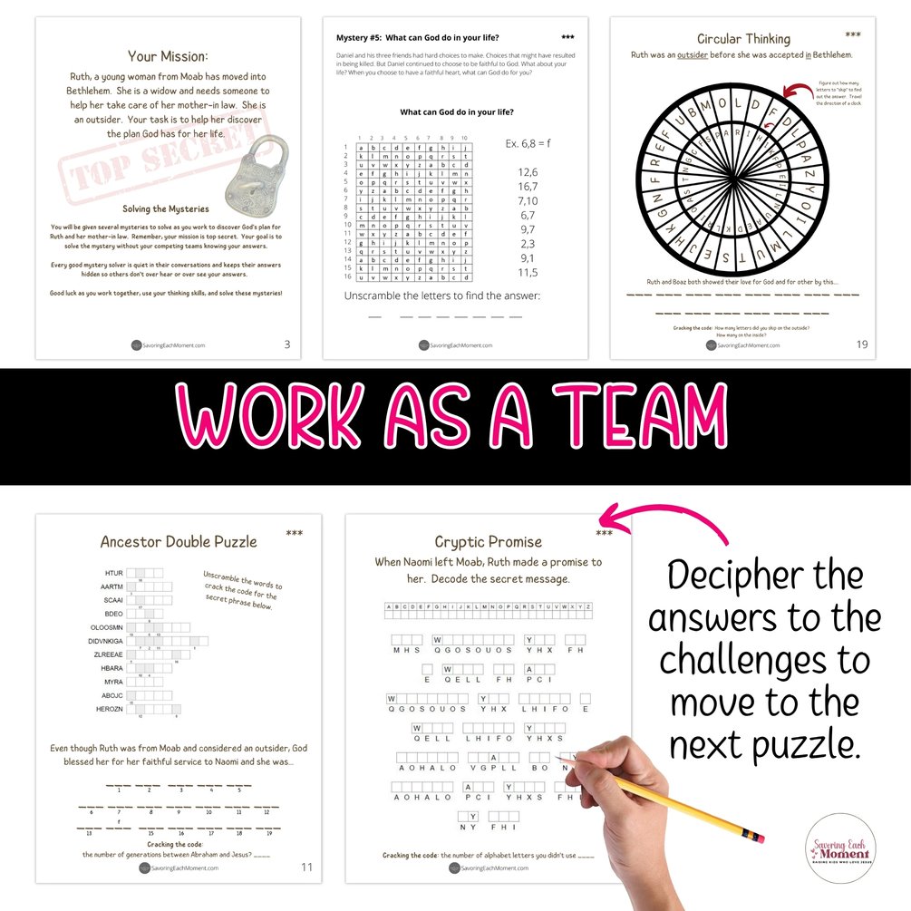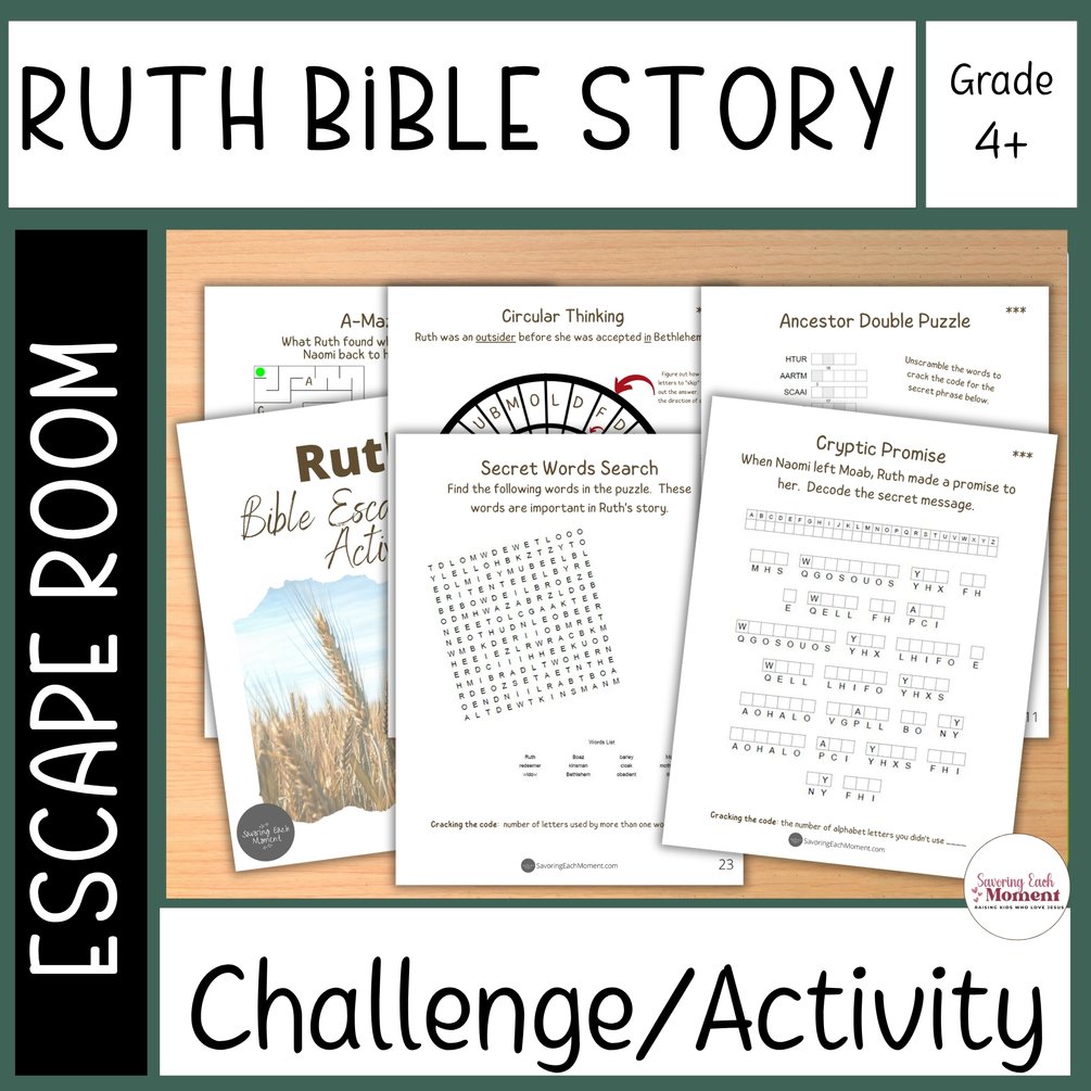 4 different Bible Escape Room Games - Joseph, Ruth, Daniel, and Joshua in pdf format