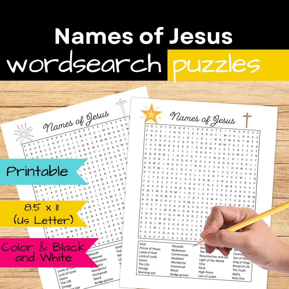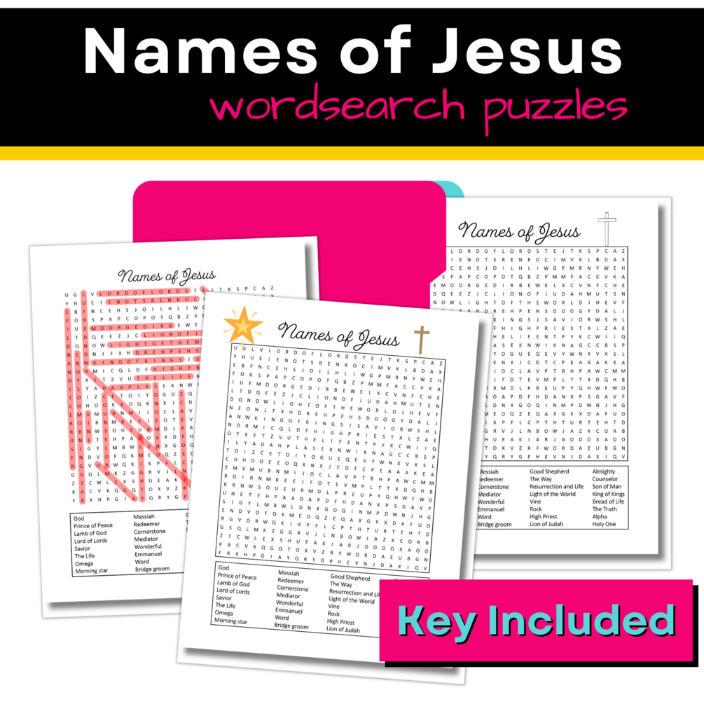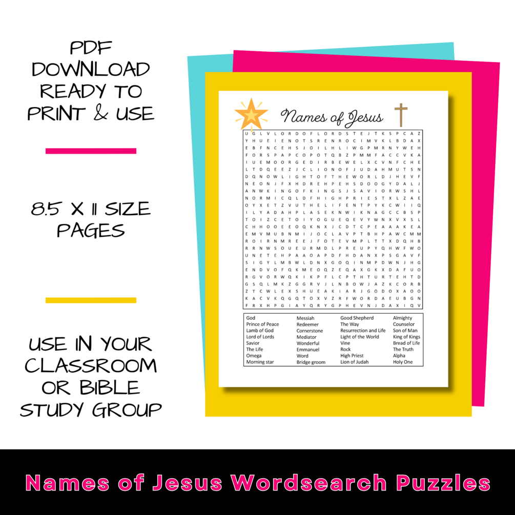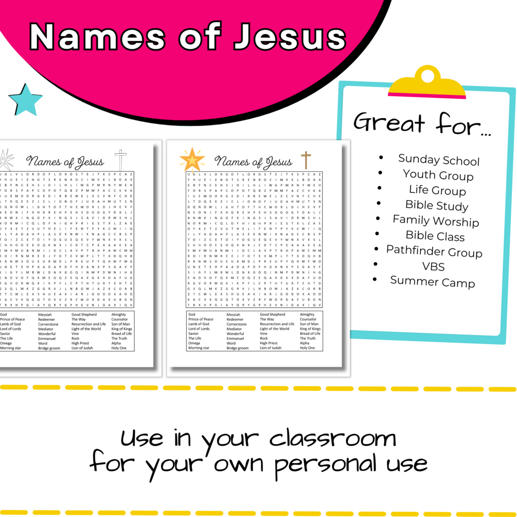 The religious Christmas activity word search puzzle of Jesus' names in the Bible can be paired with our Names of Jesus Bible Bingo game and used during Advent or any time of the year. https://www.etsy.com/listing/1565359294