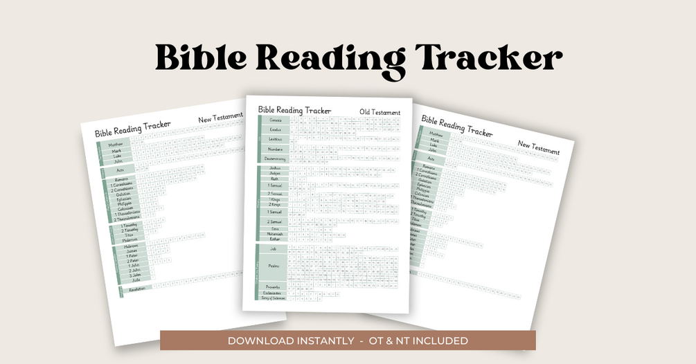 📖 Bible Reading Tracker – Check off each chapter as you read through the Bible. 3-Page digital download in US letter size.